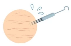アートメイクを入れる際は、細一い針先で皮膚表面から傷をつけその間に色素を置いてきます。