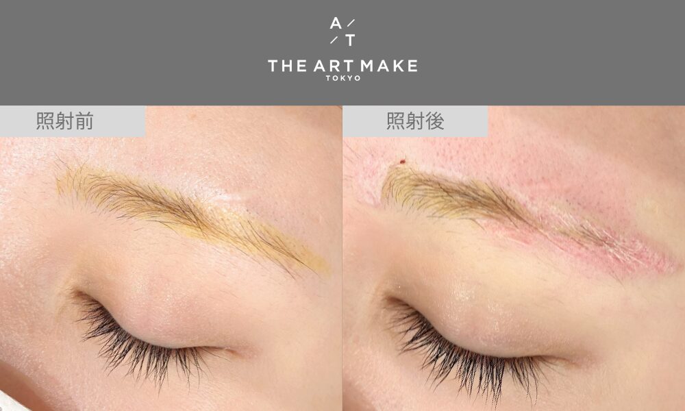 レーザー照射は、アートメイク除去や修正をする際に使われる最も一般的な方法です。眉毛やアイラインのアートメイクにレーザーを照射し、色素を分解して除去します。