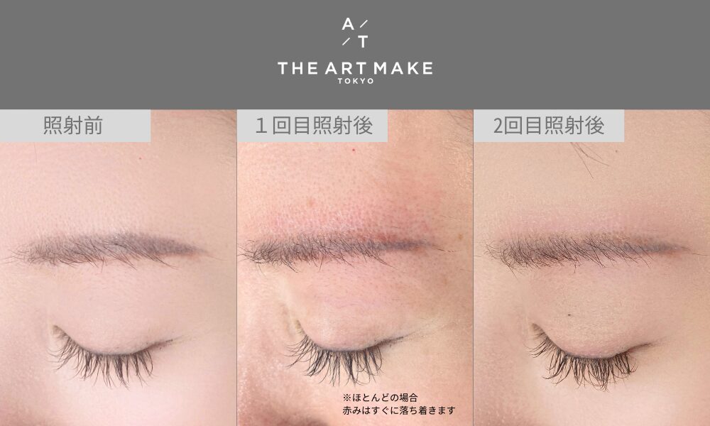 しかし、一時的に赤茶色やオレンジのフェーズを挟むとしても、後日の照射で対応が可能となります。メイクは基本的に翌日からできるため、色味が気になる場合はカバーできます。