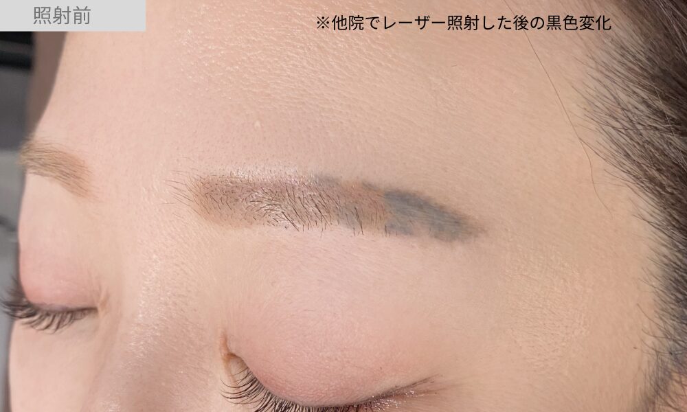 今回の患者様は、30代の女性。他院でアートメイクの部分除去のためにレーザー照射を受けた直後、アートメイクの一部が黒く変色しました。