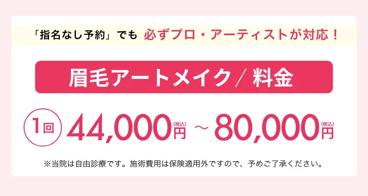 (両眉通常価格:49,600円)※医師を指名の場合のみ、指名料が発生いたします。カウンセリングのみでご予約いただいた場合も指名料は発生いたします。