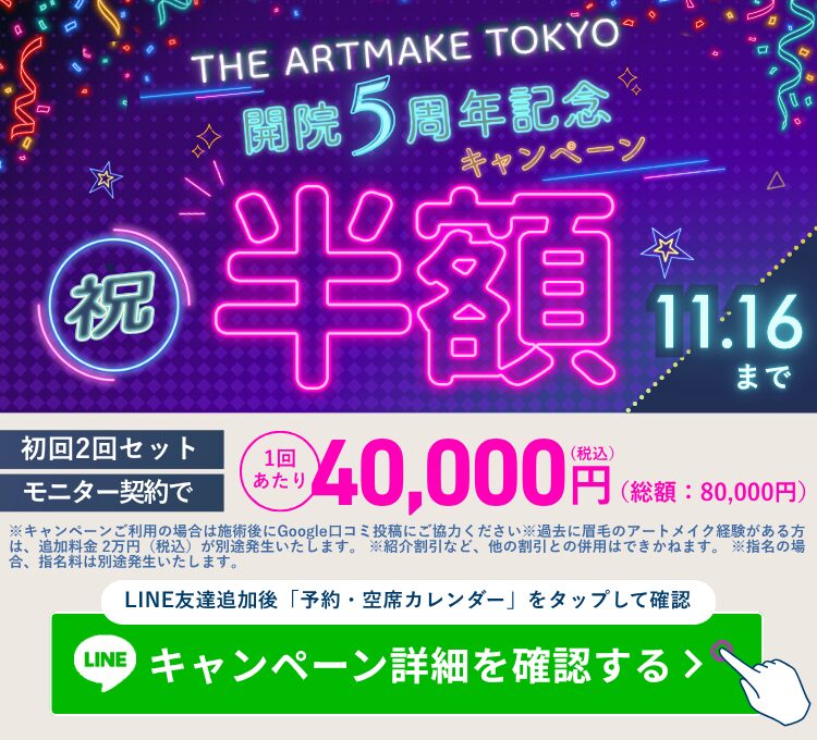 ※もともとの眉の位置、毛の状態、眉の周りの筋肉や皮膚のバランスなどにより、仕上がりに個人差が生じることがあります。理由により、仕上がりがご希望に添えない可能性が高い場合は、ご説明をさせていただいたうえで、別のご提案、または施術自体の見送りのご提案をさせていただくことがございます。もし、ご心配がある場合は、「カウンセリングのみ」のご予約をお勧めいたします。