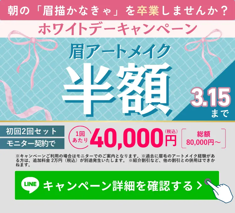※もともとの眉の位置、毛の状態、眉の周りの筋肉や皮膚のバランスなどにより、仕上がりに個人差が生じることがあります。理由により、仕上がりがご希望に添えない可能性が高い場合は、ご説明をさせていただいたうえで、別のご提案、または施術自体の見送りのご提案をさせていただくことがございます。もし、ご心配がある場合は、「カウンセリングのみ」のご予約をお勧めいたします。